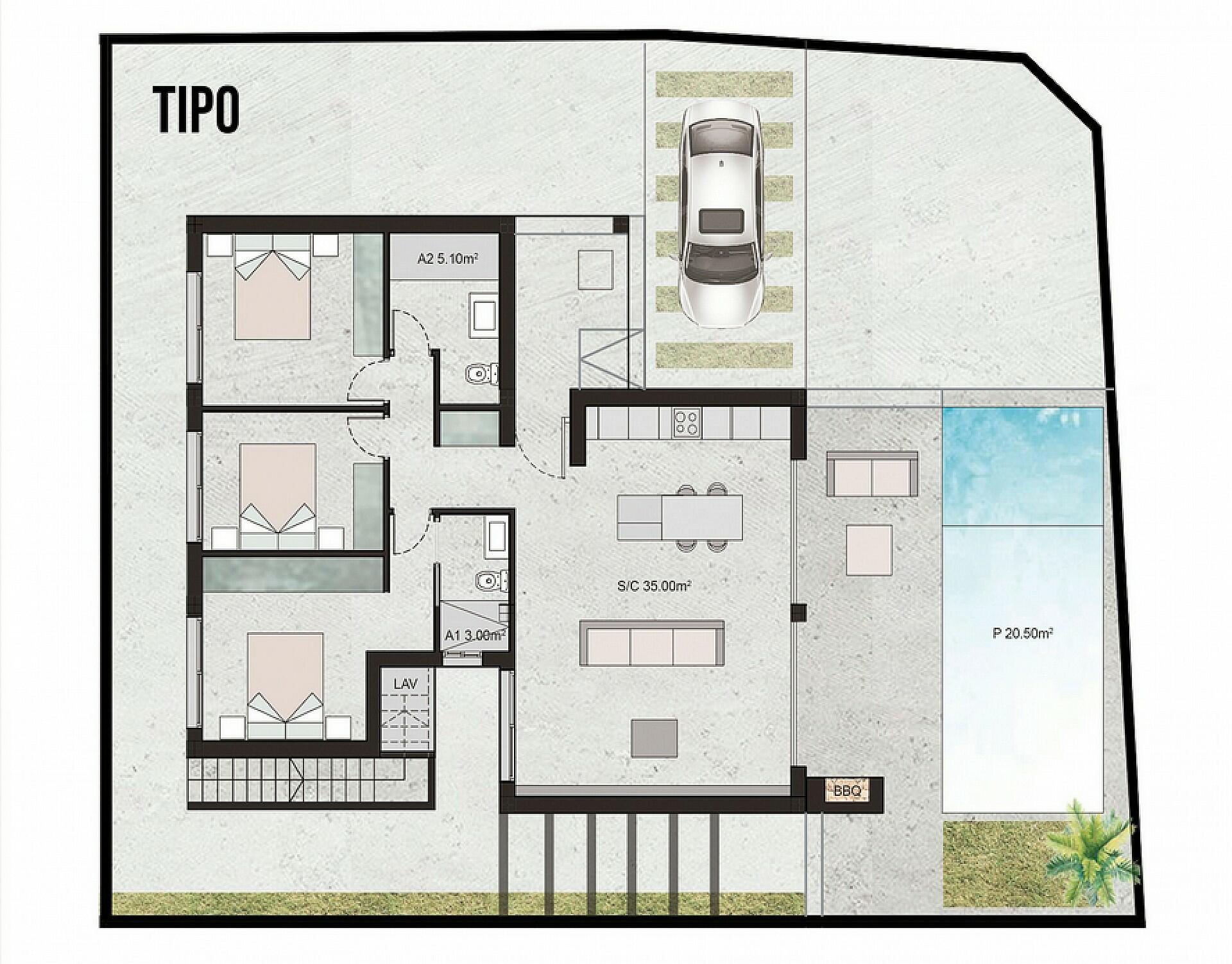 Moderne Villen mit 3 Schlafzimmern, Schwimmbad, großer Sonnenterrasse und Parkplatz